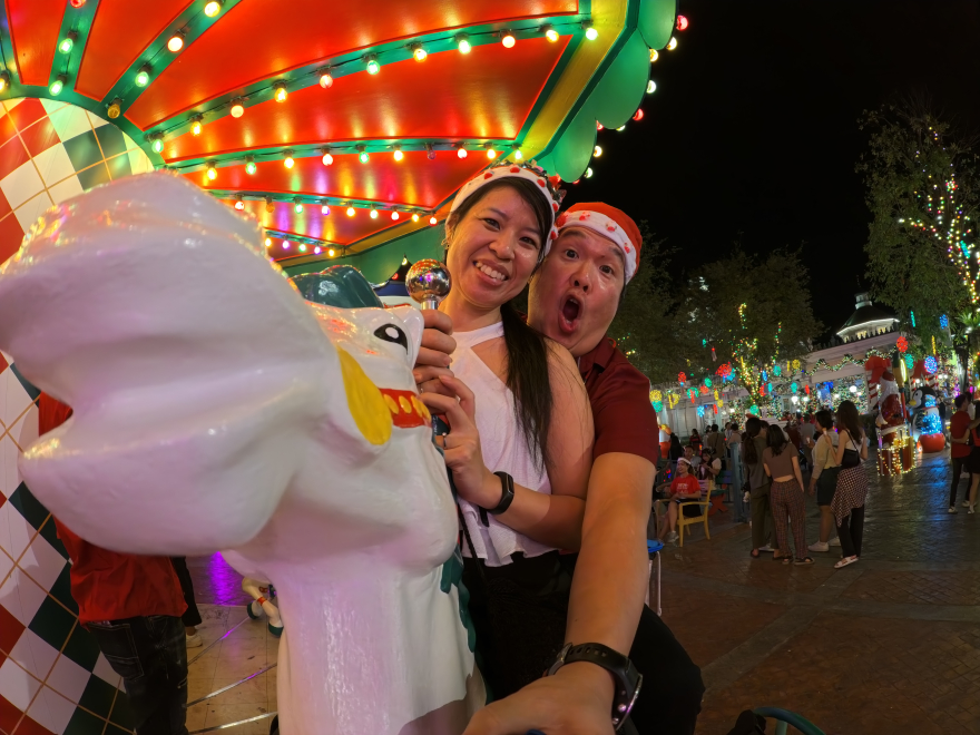 We are in Bangkok now and have been celebrating Christmas here. We spent Christmas in a restaurant where they have built a magical mini town around it. The atmosphere was very festive, with a lots of lights, decoration, ponds with boats and singing bears 😃. It's the most memorable Christmas in my life.