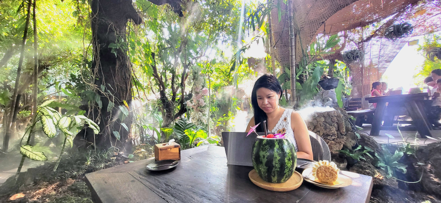 It has been 20 months since I left my home country Sweden, to travel around in Asia. This month, we’re still in Bangkok, and I now understand why it’s called the ‘Land of Smiles.’ Every time I meet a local’s eyes, I’m greeted with a gentle, genuine smile. There’s something about that simplicity—just being in the moment. I love unique café's and right now I’m in a café so lush with greenery it feels like a jungle, reminding me that peace is always available when we allow it.